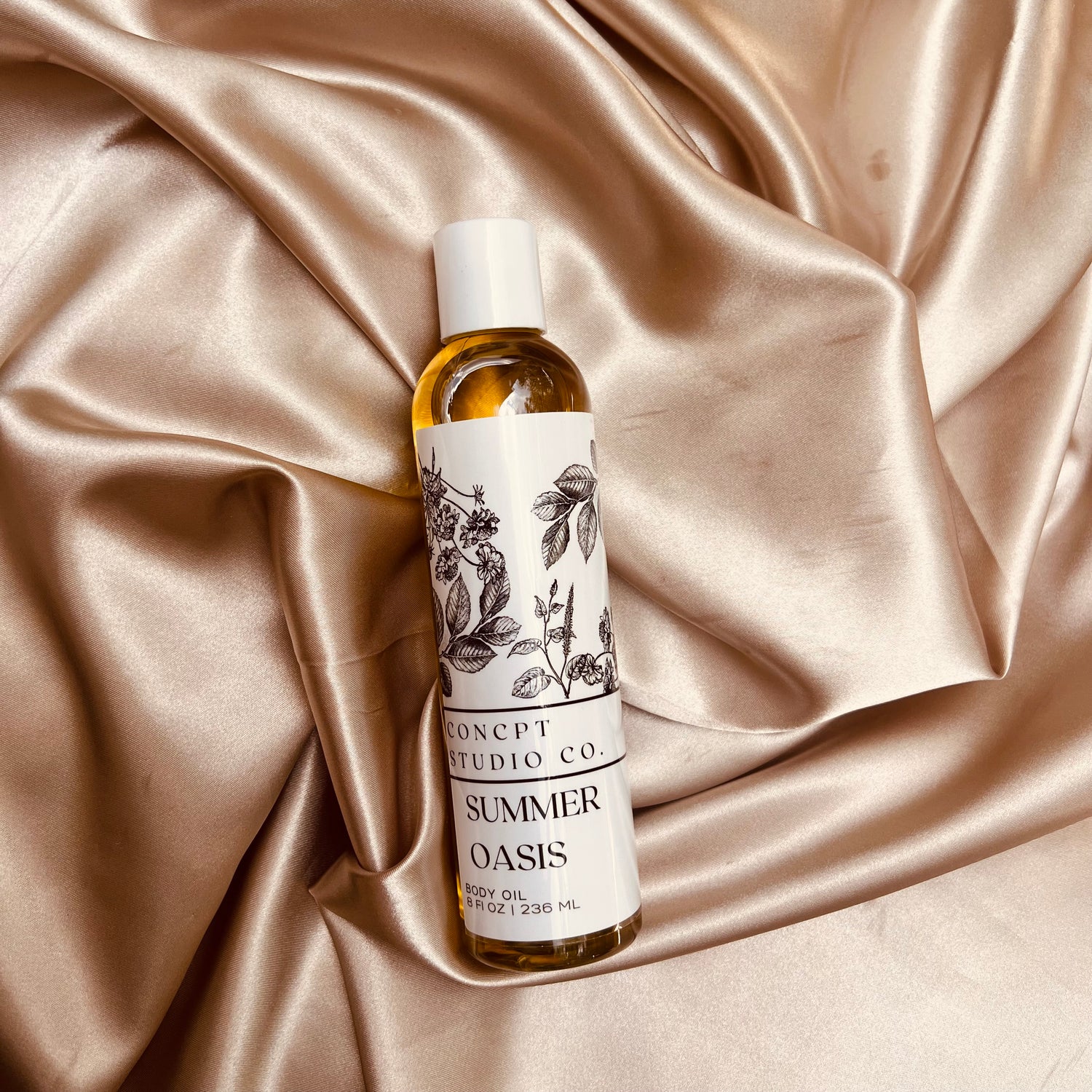 Immerse yourself in calm with our Summer Oasis Body Oil, a luxurious blend that brings the essence of peace and elegance to your daily routine. Inspired by quiet mornings near still water, this scent opens with the freshness of lily pads and soft floral jasmine, evoking a light, serene atmosphere. A splash of zesty citrus awakens the senses, while warm amber and creamy vanilla provide a smooth, grounding finish.