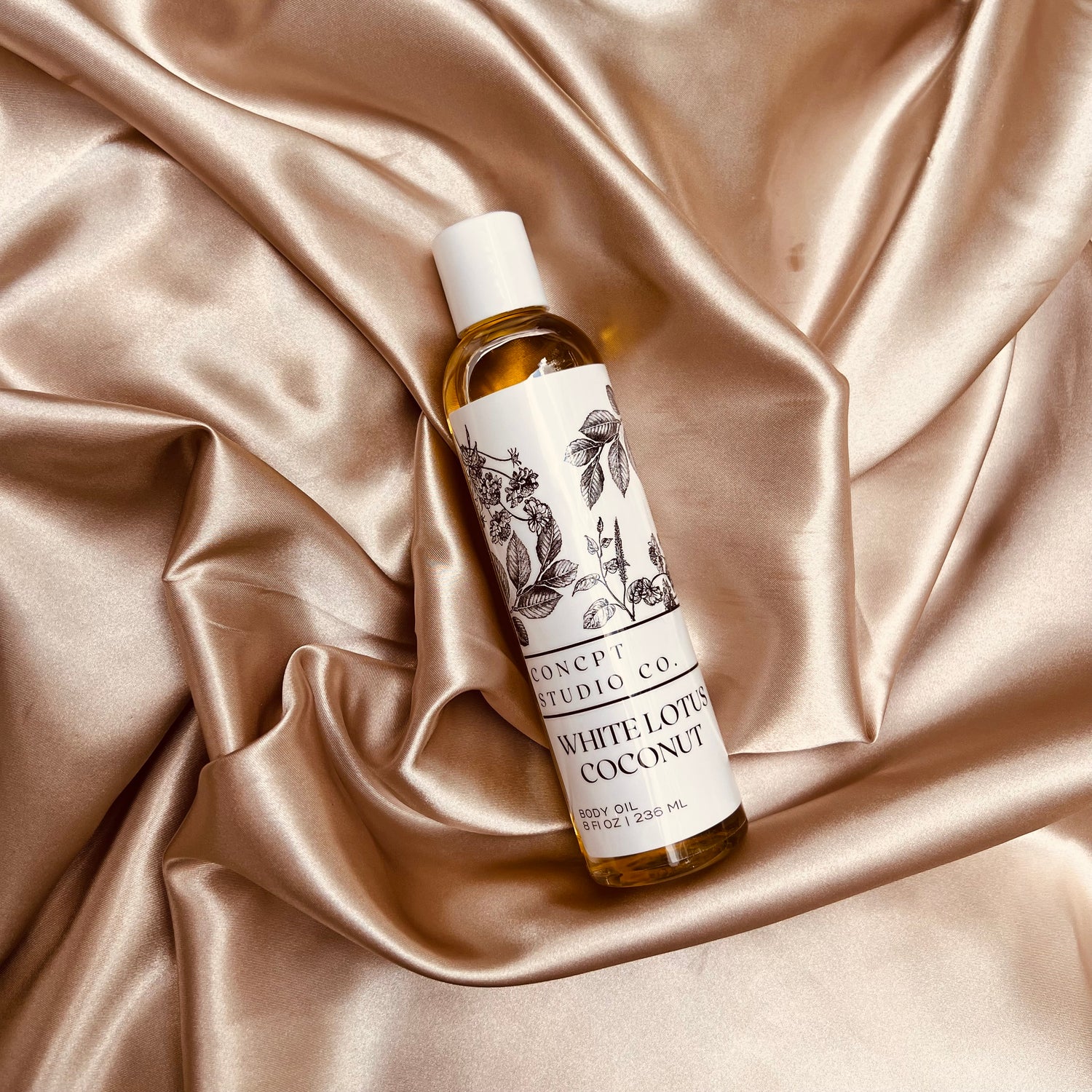 Find your moment of calm with our White Lotus Coconut Body Oil, a refreshing and luxurious blend that captures the serenity of a quiet morning by the water. This hydrating body oil opens with the crisp clarity of green bamboo, cool cucumber, and a whisper of bergamot, offering an instantly refreshing and clean aroma.